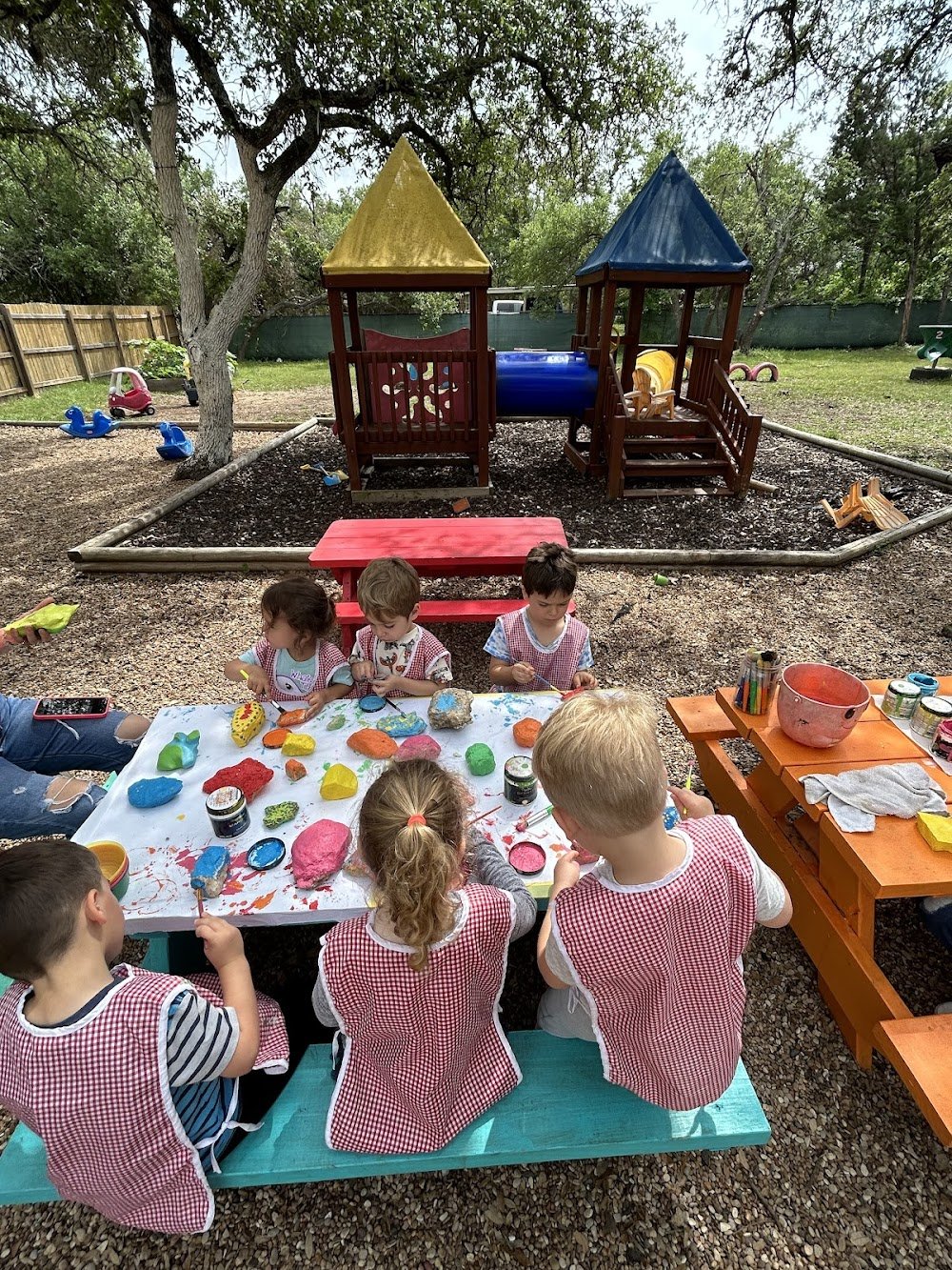 Hola Spanish Immersion is a licensed home-based program located in Southwest Austin, specifically designed for children between the ages of 2 and 5. This program focuses on creating a fun, engaging environment where all classes and activities are taught entirely in Spanish. With a maximum capacity of 12 children, the program emphasizes personal attention and a rich cultural environment through an age-appropriate curriculum. The facility features dedicated indoor and outdoor activity areas, including separate classroom spaces for different age groups: Hormigitas (2-3 years) and Chapulines (4-5 years). Parents can choose from flexible enrollment options, including two, three, or five days a week, with both regular and full-time care hours available. The curriculum integrates creative artwork, holiday performances, and significant outdoor time to support social interaction and language development in a setting that feels like family care.