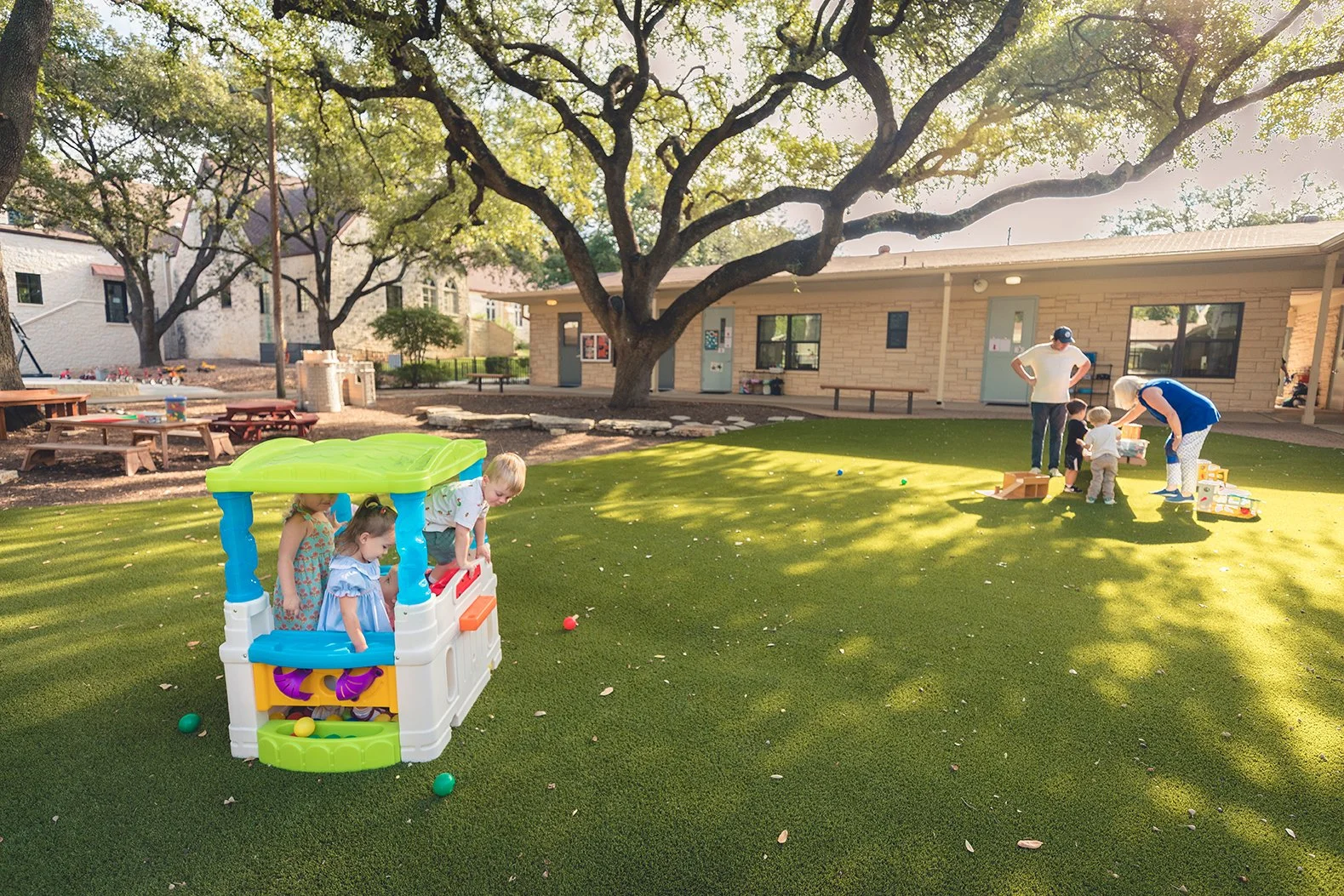 While no external employee reviews were found on platforms like Glassdoor or Indeed for the Austin location, internal records and local mentions indicate a stable staff with long-tenured lead teachers. The school is led by Director Jessica Johnson and maintains low teacher-to-child ratios, ranging from 1:4 for toddlers to 1:7 for Pre-K.